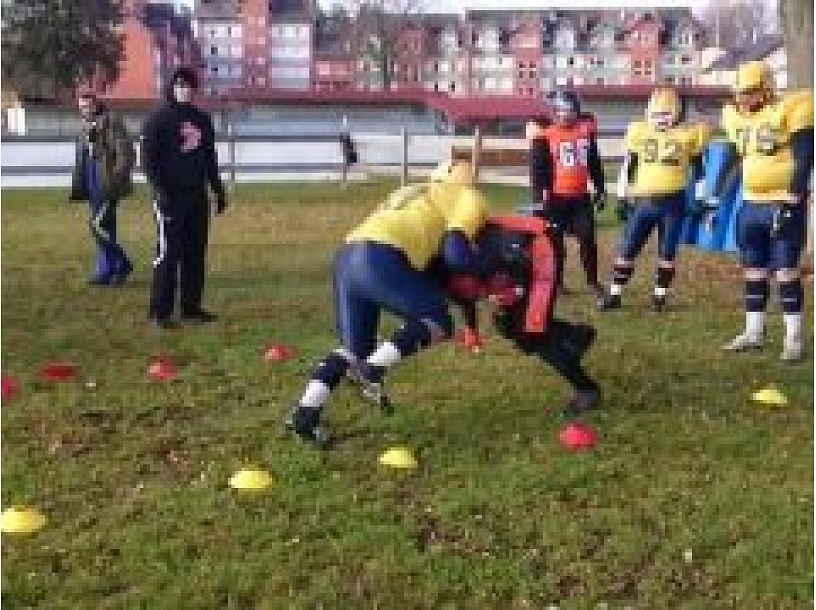 Drēgnajā 8.novembra rītā Upesciema stadionā tikās amerikāņu futbola komandas "Riga Lions" un "Minskas Zubrs", lai kopīgi atklātu amerikāņu futbola treniņnometnes pirmo dienu. Treniņnometne notika visas dienas garumā, un tās laikā spēlētāji veica dažādus uzdevumus pieredzējušu baltkrievu un amerikāņu treneru vadībā. Nometnes vadīšana bija uzticēta galvenajam "Riga Lions" komandas trenerim - amerikānim Metam Kesindžeram, kurš savulaik būdams viens no treneriem, kopā ar 2.divīzijas Ziemeļdakotas Universitātes futbola komandu ir izcīnījis Nacionālās koledžu sporta asociācijas (NCAA) čempionu titulu. Ievērojams ir arī fakts, ka viens no Meta trenētajiem amerikāņu futbolistiem aizvadījis desmit gadus ilgu profesionālu karjeru NFL un pat piedalījies 2009.gada Superbowl pusfināla izcīņā "Minesotas Vikings" sastāvā fullback pozīcijā. Treneris pats gan visvairāk lepojas ar gadu trenera amatā kurlmēmo universitātē, kur viņš veiksmīgi izstrādājis sistēmu, pēc kuras spēlētāji sinhroni darbojas laukumā.